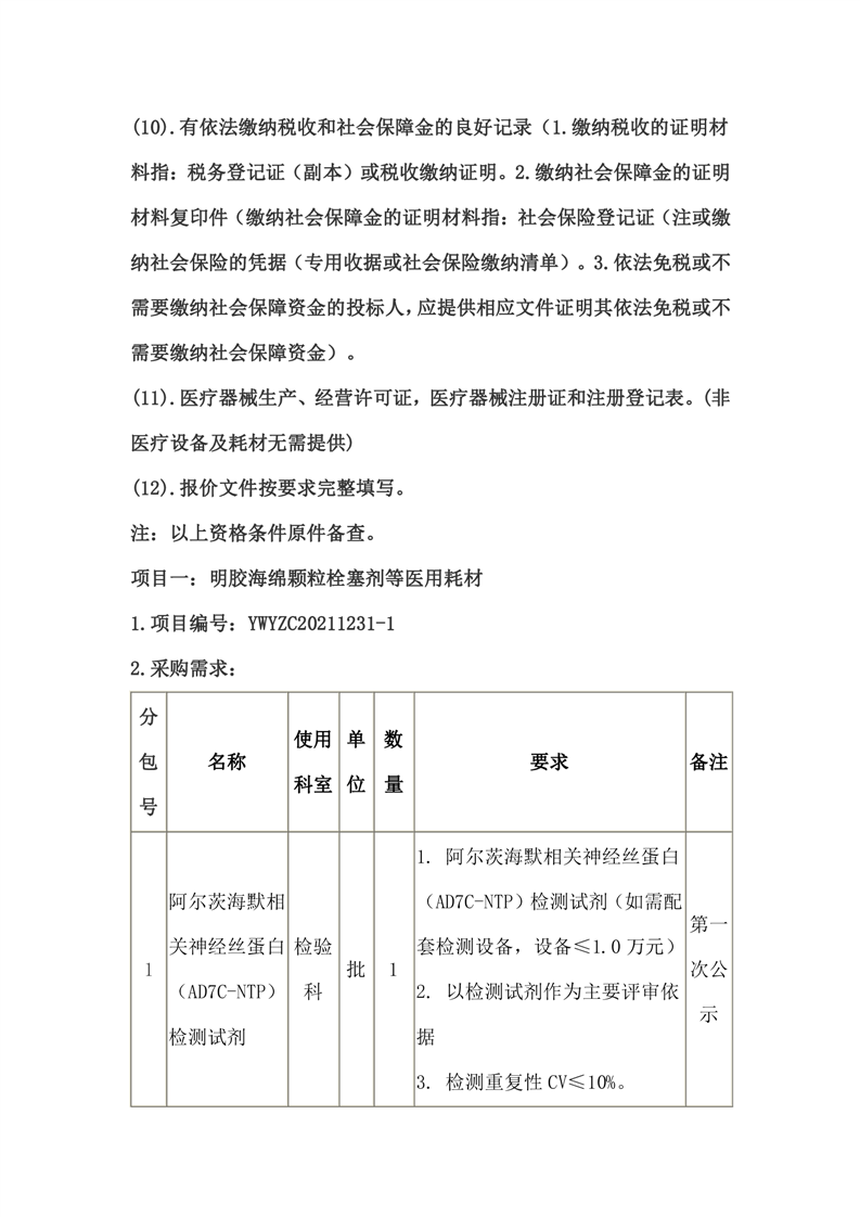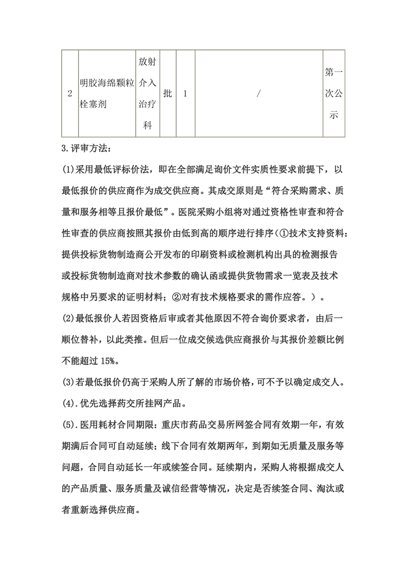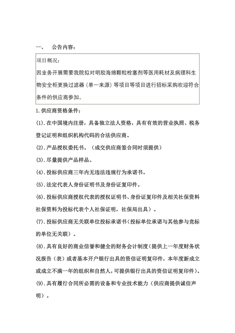 明胶海绵颗粒栓塞剂等医用耗材及病理科生物安全(单一来源)等项目招标采购公告